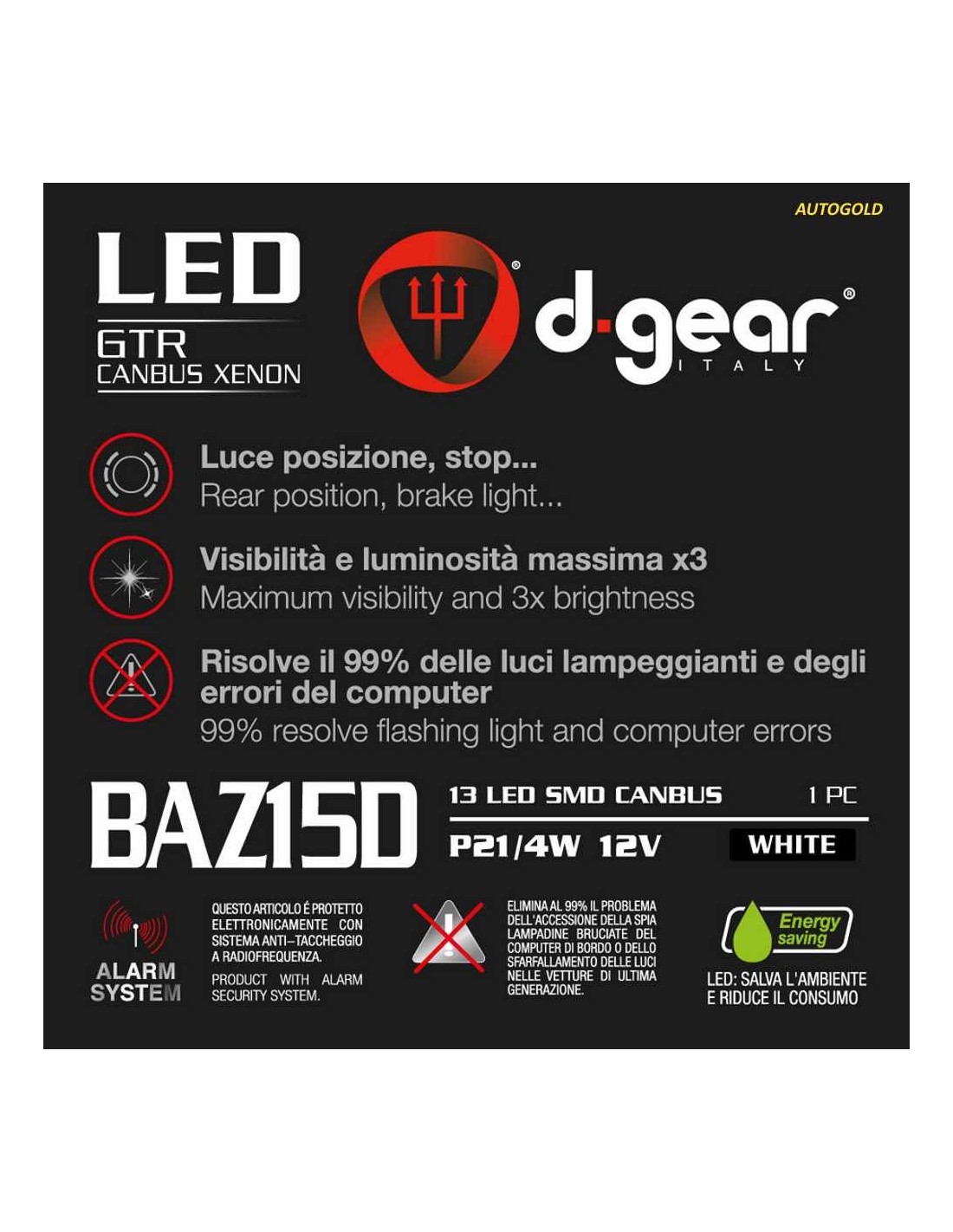 LAMPADINA LED P21/4W BAZ15D - FANALI POSTERIORI
